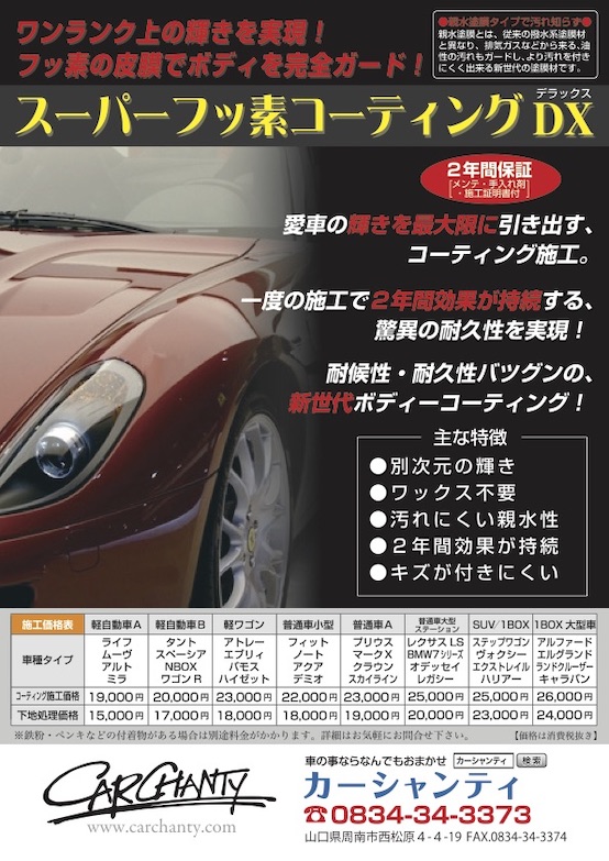 対応メニュー カーシャンティ 周南市 山口県で車のことなら何でもカーシャンティにおまかせ下さい ボディコーティング からフィルム施工 ドレスアップ チューニングその他承ります